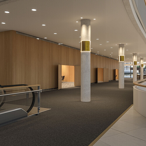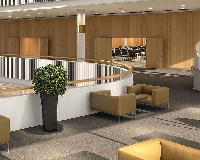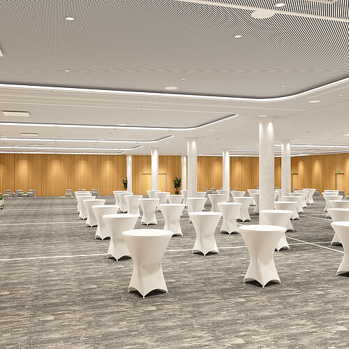 Unsere Säle X und Y im CCH-Ost auf der ersten und zweiten Etage bestechen durch eine Flexibilität, die jeweils pro Saal-Ebene sechs bis zwölf unterschiedliche Raumgrößen und -varianten erlaubt – ob als Breakout-Rooms, für Ausstellungen oder Bankette. Die Flächen sind mit Teppich ausgelegt. Aus den dazugehörigen Foyers auf der X- und Y-Ebene hat man einen atemberaubenden Blick in die Eingangshalle des CCH.